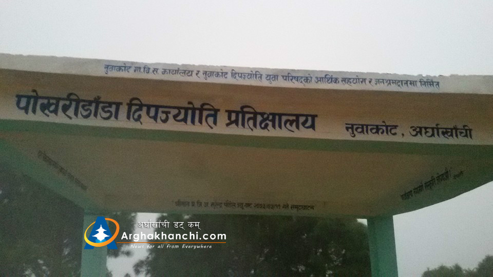 सन्धिखर्क, अर्घाखाँची ( अर्घाखाँचीडट्कम) । अर्घाखाँची जिल्लाको नुवाकोटकाे पोखेडाँडामा निर्माण गरेकाे प्रतिक्षालयकाे उद्घाटन गरिएको छ ।