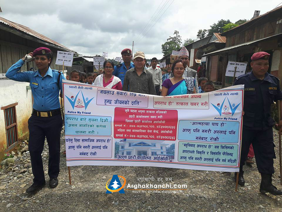 सन्धिखर्क, अर्घाखाँची ( अर्घाखाँचीडट्कम) । मानव बेचबिखन तथा अोसारपसार विरूद्धको दशौ राष्ट्रिय दिवस र प्रहरी मेरो साथी भन्ने कार्यक्रम अर्घाखाँची जिल्लाको बिकट क्षेत्र सिमलपानी गाबिसमा सम्पन्न भएको छ ।