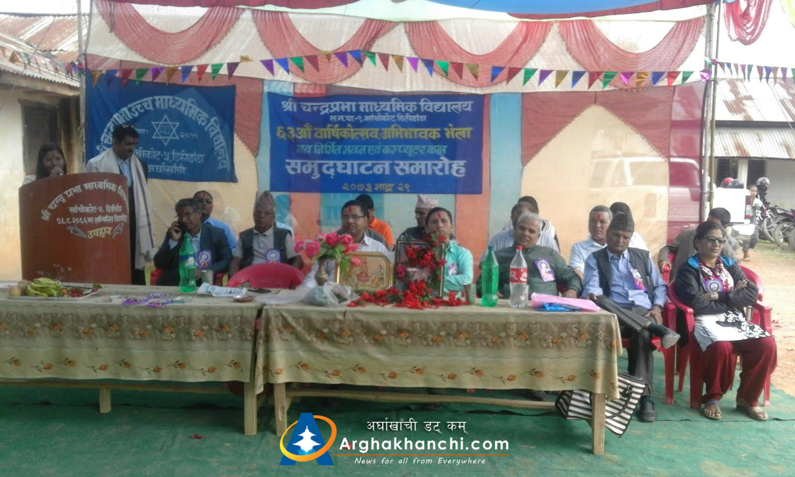 डिहिडाँडा, अर्घाखाँची भदौ २९ । चन्द्र प्रभा उच्च मावि खाँचीकोको ६३ औं वार्षिक उत्सव तथा नवनिर्मित भवनको एक कार्यक्रमका बीच उद्घाटन गरिएको छ ।