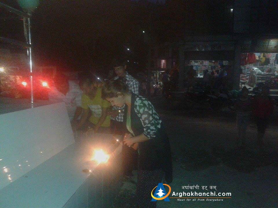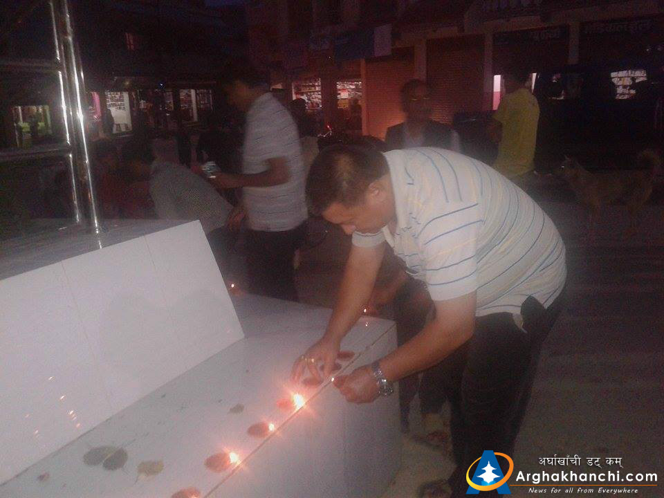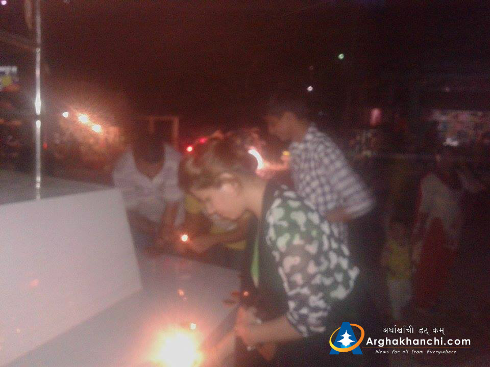 उद्योग वाणिज्य संघ अर्घाखाँचीको अायोजनामा गरिएको दिपावली कार्यक्रमको प्रमुख जिल्ला अधिकारी सुरेन्द्र पौडेलले बत्ती बालि सुभारम्भ गर्नु भएको थियोे ।