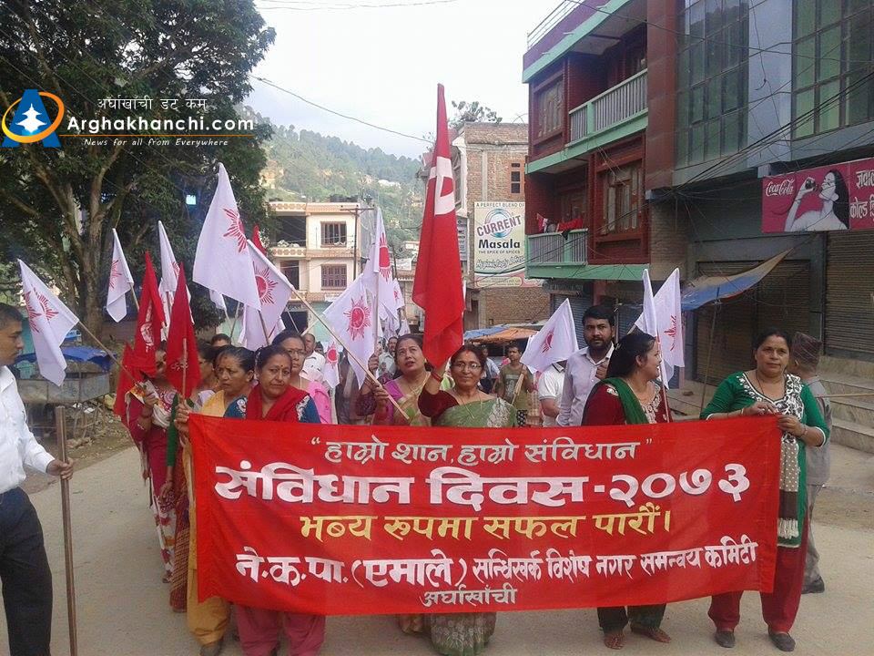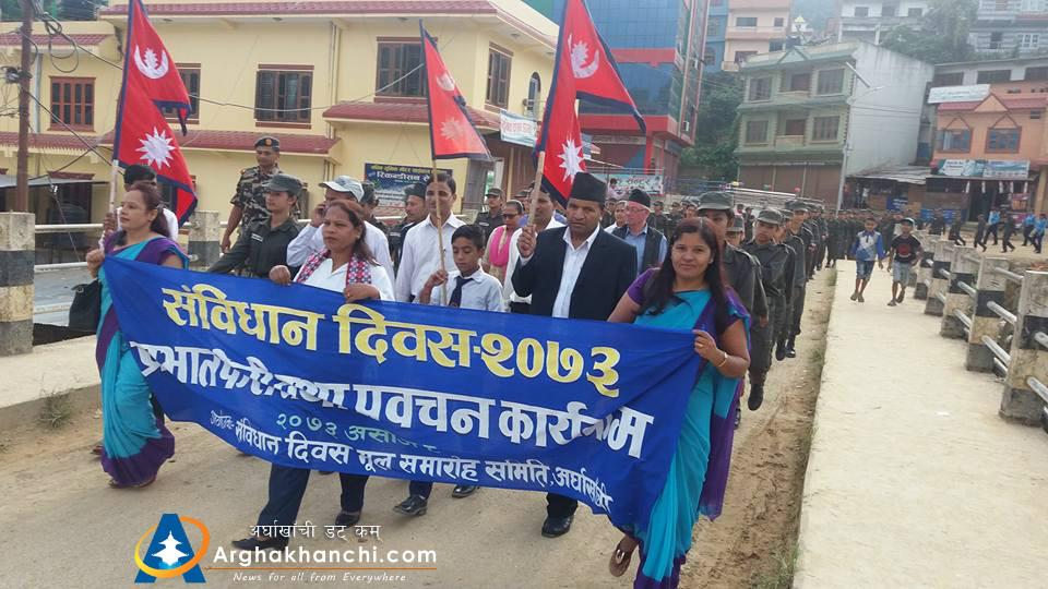 सबिधान दिबस २०७३ को अबसरमा सन्धिखर्कमा अायोजना गरिएको प्रबचन कार्यक्रममा मन्तब्य राख्दै जिल्ला न्यायाधीश बास्तोलाले सबै को हक अधिकार सुनिश्चित गरेको जनताको सबिधान जनताका प्रतिनिधि ले बनाउने यो अबसर नै सबैभन्दा ठुलो हामि सबैका लागि एतिहासिक भएको बताउनु भयो । कार्यक्रममा प्रमुख जिल्ला अधिकारी सुरेन्द्र पौडेलले सबिधानले जनता सबैभन्दा शक्तिशाली भएको बताउदै सम्बिधान कार्यनयन गर्ने तिर सबै लाग्नु पर्नेमा जोड दिनु भयो ।