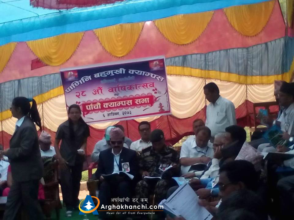पाणिनी बहुमुखी क्याम्पस सन्धिखर्क अर्घाखाँचीको २८ अौ बार्षिक उत्सब कार्यक्रमलाई सम्बोधन गर्दै प्रमुख जिल्ला अधिकारी पौडेलले क्याम्पसको भौतिक संरचनालाई सुधार गर्नका लागि र क्याम्पसलाई सहयोग गर्नका लागि अाफुले पहल गर्ने बताउनु भयो ।