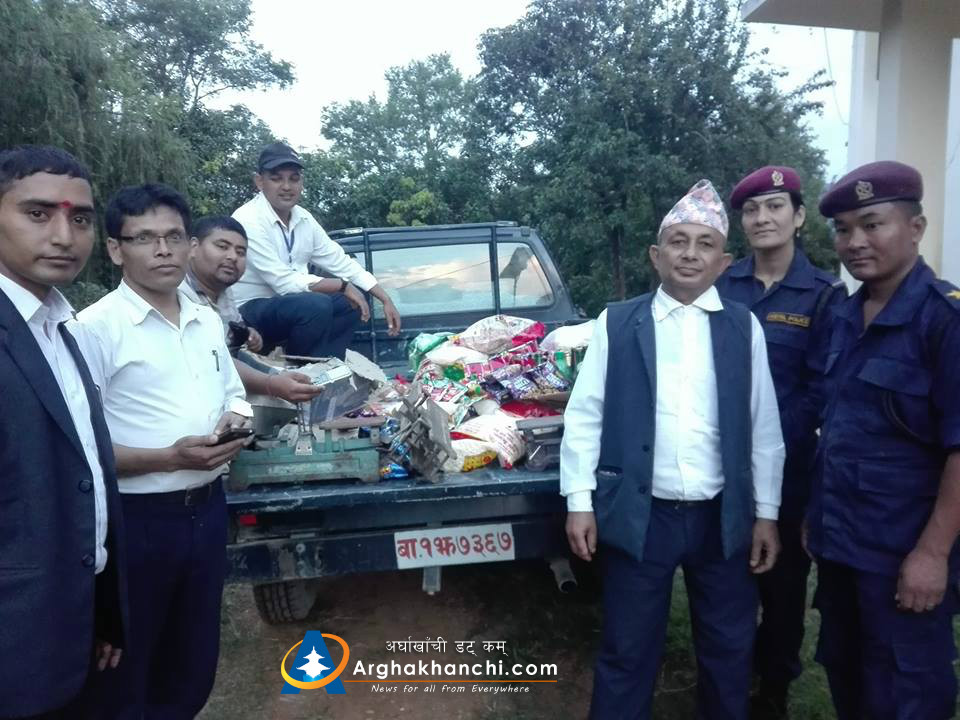 सन्धिखर्क नगरपालिकाको  बसपार्क वरिपरिका विभिन्न क्षेत्रका बजारमा  ३१ भन्दा बढी पसल अनुगमन गरी व्यापक रुपमा विभिन्न किसिमका अखाद्य पदार्थ, हल्का पेय पदार्थ र रक्सी समेत जफद गरि नियन्त्रणमा लिएको सहायक प्रमुख जिल्ला अधिकारी नारायण खत्रीले जानकारी दिनुभयो ।