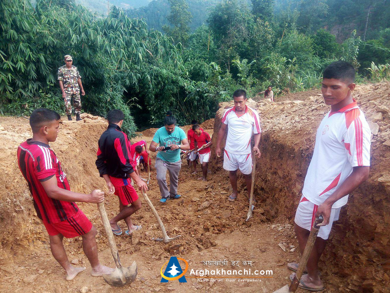 सन्धिखर्कको म्यालपोखरी शिवालय मन्दिर जाने बाटो बनाउदै नेपाली सेनाको र स्थानियबासी (तस्बिर सहित)