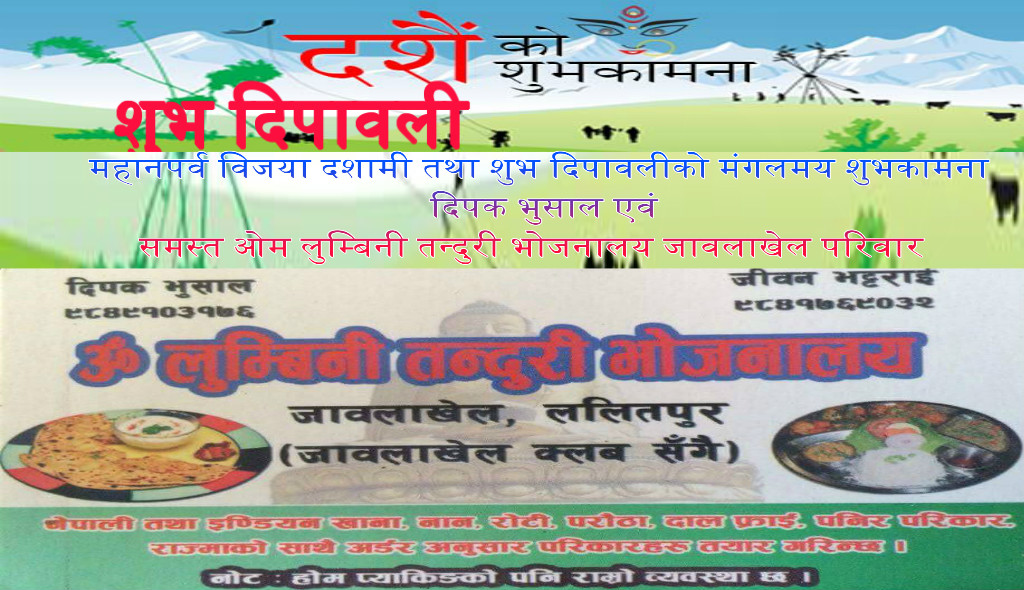 हिन्दुहरुको महानपर्व विजया दशामी तथा शुभ दिपावलीको मंगलमय शुभ कामना !!!