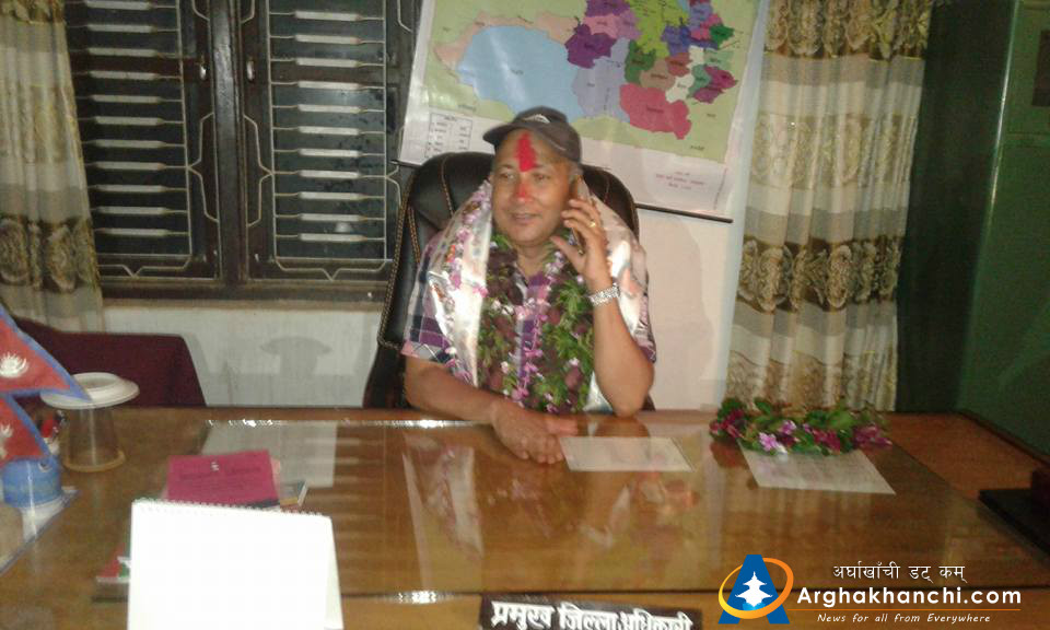 सन्धिखर्क, अर्घाखाँची (अर्घाखाँचीडट्कम) । अर्घाखाँचीमा भर्खर सरुवा भई अाउनु भएका प्रमुख जिल्ला अधिकारी कृष्ण बहादुर कटुवालले जिल्लाको शान्ति सुरक्षा अमन चयन कायम गर्नु अाफ्नो पहिलो दायित्व भएको बताउनु भएको छ ।