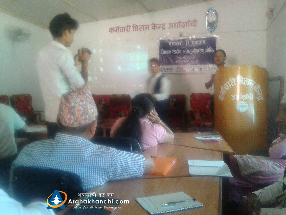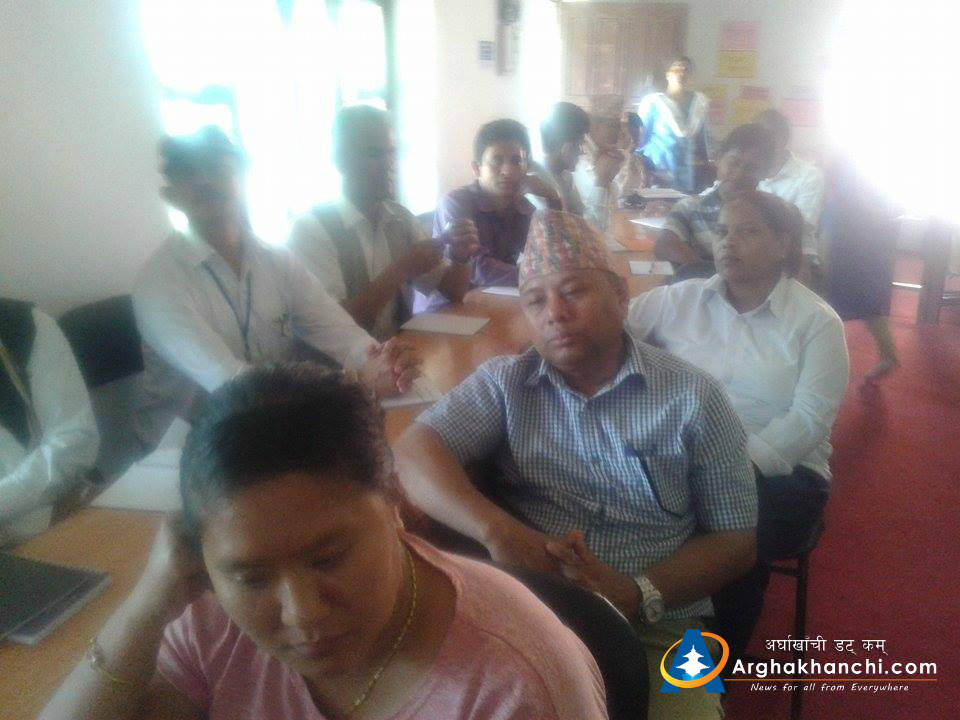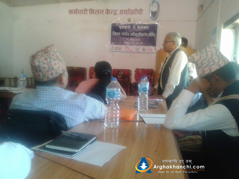 स्थानीय बिकास अधिकारी लक्ष्मि पान्डे गौतमको अध्यक्षता जिल्ला अस्पताल अर्घाखाँचीका प्रमुख डाक्टर जगन्नाथ तिबारीको स्वागत मन्तब्य जिबिसका कार्यक्रम अधिकृत हरिषचन्द्द भुसालको सहजिकरण सेषकान्त घिमिरेको सन्चालनमा सम्पन्न भएको थियोे ।