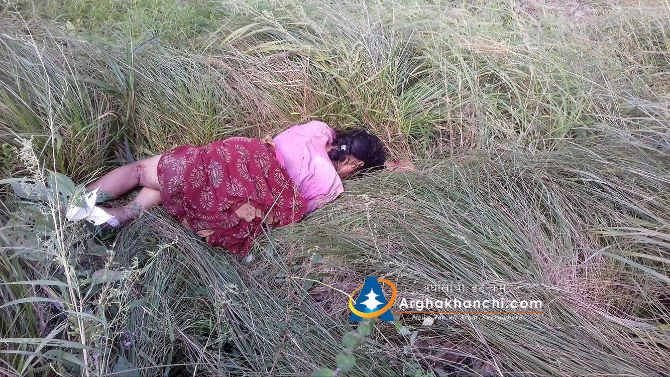 सन्धिखर्क नगरपालिका – ६ सालाका रुख ( फुदवाङ माथि ) मा स्थानिय मन बहादुर नेपालीकी अन्दाजी ५० वर्षिया श्रीमती मनकुमारी नेपालीको २० मिटर अल्गो भिरबाट लगेर मृत्‍यु भएको हो । उनका  १ छोरा र १ छोरी रहेका छन् ।
