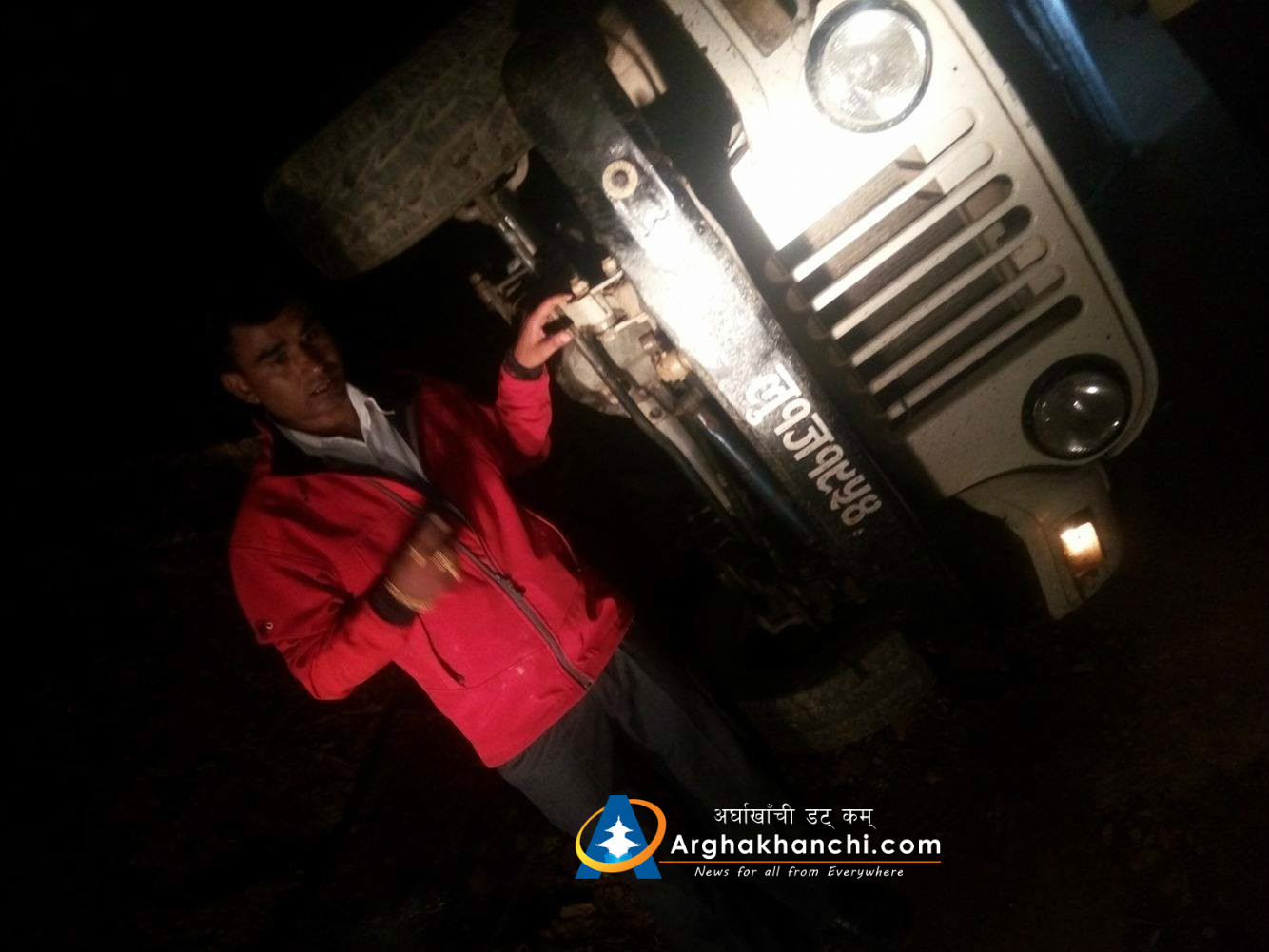 लु १ ज १९५४ नम्बरको जीप दुर्घट्नामा कुनै पनि मानविय क्षति भएको छैन् । जीपमा चालक, सहचालक मात्र गाडीमा रहेको बेला दुर्घट्ना भएको हो । दुर्घट्ना गाडीको ब्रेकफेल भएर भएको भनिएता पनि अहिले सम्म यतार्थ कारण खुल्न सकेको छैन् ।