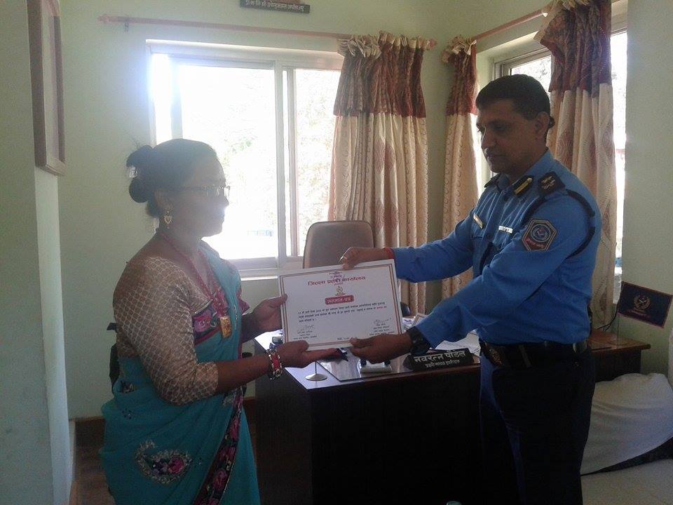 जिल्ला प्रहरी कार्यालय अर्घाखाँचीमा प्रहरीलाई सहयोग गर्ने तथा ६१ अौ प्रहरी दिबसमा पुरस्कृत हुन छुटेकोहरुलाई जिल्ला प्रहरी कार्यालयमा बिहिबार अायोजित पुरस्कार बितरण कार्यक्रममा बोल्दै प्रहरी नायब उपरीक्षक नबरत्न पौडेलले प्रहरीलाई जनताले निकै सहयोग गरेको बताउदै अागामी दिनमा सहयोगको अपेक्षा समेत रहेको बताउनु भएको छ ।