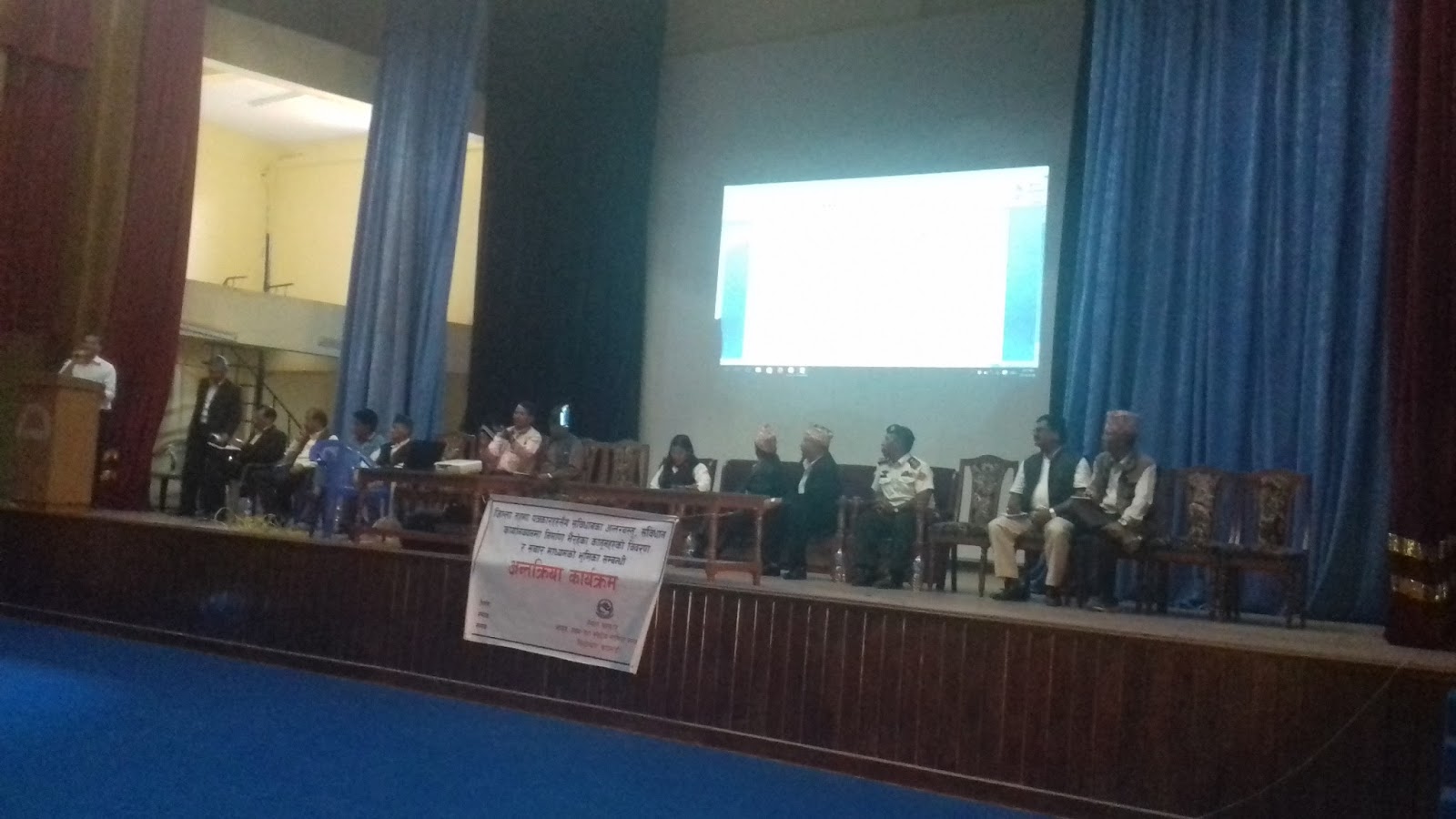 कार्यक्रममा मन्तव्य राख्दै प्रमुख जिल्ला अधिकारी कृष्ण बहादुर कटुवाल,स्थानीय विकास अधिकारी लक्ष्मी पाण्डे गौतम, कानून, न्याय तथा संसदीय मामिला मन्त्रालयका उपसचिव हुम बहादुर के.सी.,शाखा अधिकृत बावुराम पाण्डे,अरुणा जोसी र नेपाल पत्रकार महासंघका अध्यक्ष शोभाखर पन्थी ले नेपालको संविधान संसारका कुनैपनि संविधान भन्दा कमजोर नभएको भन्दै संविधानमा उल्लेख भएका सकरात्मक कुरा जनता समक्ष पुर्याई संविधान कार्यान्वयनको निम्ति माओल सिर्जना गर्न संचार कर्मिको ध्यानाकर्षण गराए ।