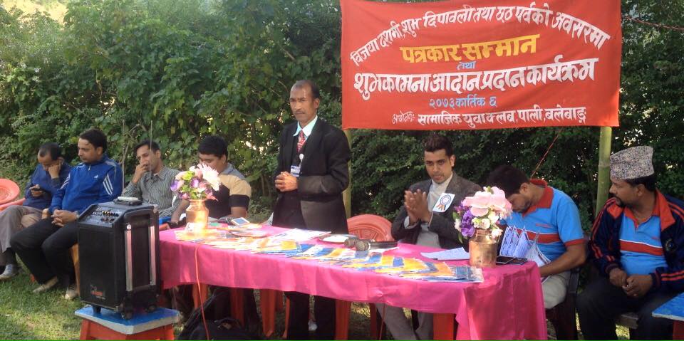 पाली,अर्घाखाँची (अर्घाखाँची डटकम्) । अर्घाखाँचीको पाली गाविस ९ वलेवागमा रहेको सामाजिक युवा कल्वले एक औपचारिक कार्यक्रमका साथ अर्घाखाँची जिल्लाका वरिष्ठ पत्रकारलाई खादा ओढाई सम्मान गरेको छ ।