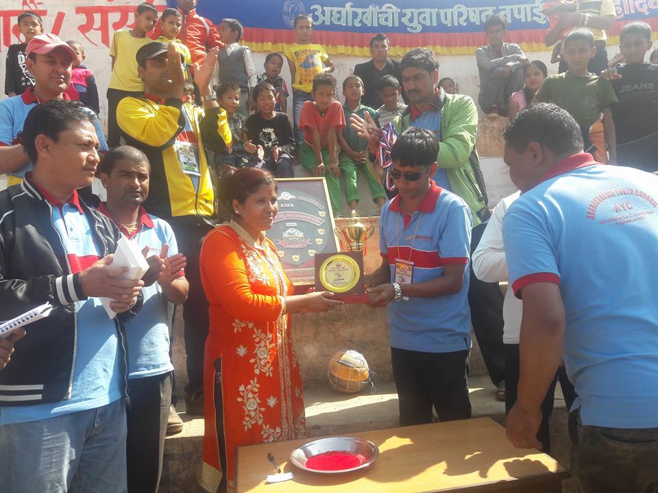 सन्धिखर्क, अर्घाखाँची कात्र्तिक ६ । अर्घाखाँची युवा परिषद्दको आयोजनामा सम्पन्न एवाइसी तिलक स्मृति भलिवल प्रतियोगिताको उपाधि सन्धिखर्क नगरपालिका वडा नं. १४ डिभर्नाले हात पारेको छ ।