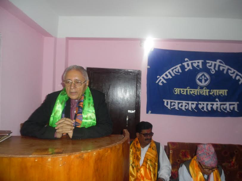 नेपाल प्रेस युनियन अर्घाखाँची शाखाले मङगलवार गरेको पत्रकार सम्मेलनमा उनले हतारमा अख्तियार दुरुपयोग अनुसन्धान आयोग प्रमुख लोकमानसिंह कार्की विरुद्धसंसदमा महाअभियोग प्रस्ताव दर्ता गरेको आरोप लगाए ।