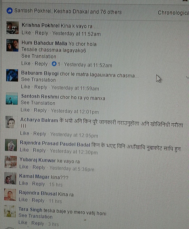 सामाजिक सञ्जाल फेसबुकमा आफ्नो तस्बिर पोस्ट गर्दा आफुले ठुलो अपराध गरेको जस्तो भएको र आफ्न्त, साथीहरुको अगाडि समेत नराम्रो भएको बताए । यसले आफुलाई सार्है दुखित बनाएको र नेपाल फर्कन समेत डर लागेको बताए । खड्काले अहिले उनलाई फेसबूक पेजमा ब्लक गरेका छन् । राजु खड्का भन्ने व्यक्तिलाई आफुले नजिकबाट नचिनेको उनले बताए ।