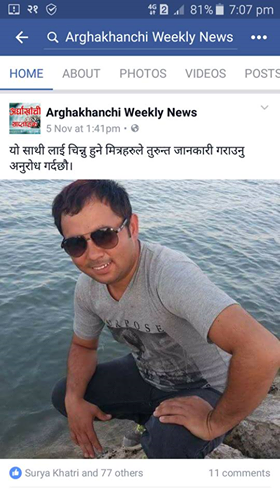 अर्घाखाँची साप्ताहिकको फेसबूक पेजमा बिना अनुमती तस्बिर नै पोष्ट गरी चरित्रहत्या गरेका छन् ।