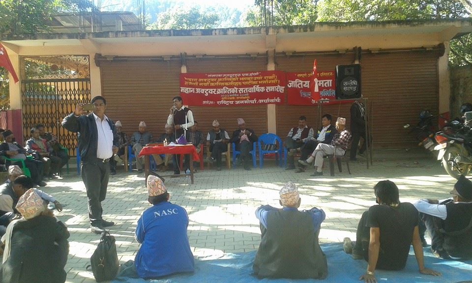 यस उपलक्ष्यमा राष्ट्रिय जनमोर्चा केन्द्रिय समितिले यहि २०७३ कार्तिक २२ गतेदेखि २०७४ कार्तिक २२ गते १ वर्षसम्म ”अक्टोबर क्रान्तिको झण्डालाई उँचा राख्न नयाँ पीडिबाट हजारौँ क्रान्तिकारीहरूलाई भर्ना गरौँ” भन्ने मूल नाराका साथ अक्टोबर क्रान्तिको शतवार्षिकी देशैभरि विभिन्न कार्यक्रमका साथ मनाउने निर्णय गरेको छ ।