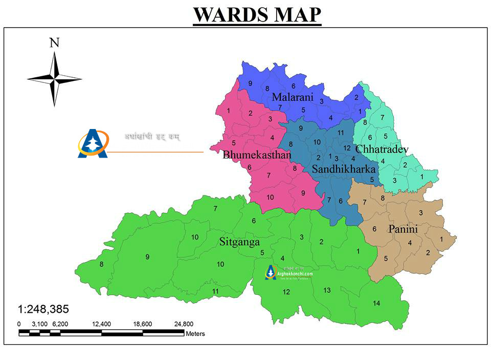 सन्धिखर्क, अर्घाखाँची ( अर्घाखाँचीडट्कम) । अर्घाखाँची जिल्लाको स्थानिय पुनसंरचना अनुसार अब तीन नगरपालिका र तीन गाउँपालिका बन्ने भएका छन् । जस अनुसार सन्धिखर्क नगरपालिका, शितगँगा नगरपालिका, भूमिकास्थान नगरपालिका, मालारानी गाँउपालिका, छत्रदेव गाउँपालिका र पाणिनी गाउँपालिका हुने छन् । यस्तै वार्डको समेत विभाजन गरिएको छ ।
