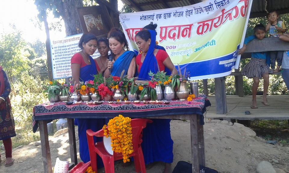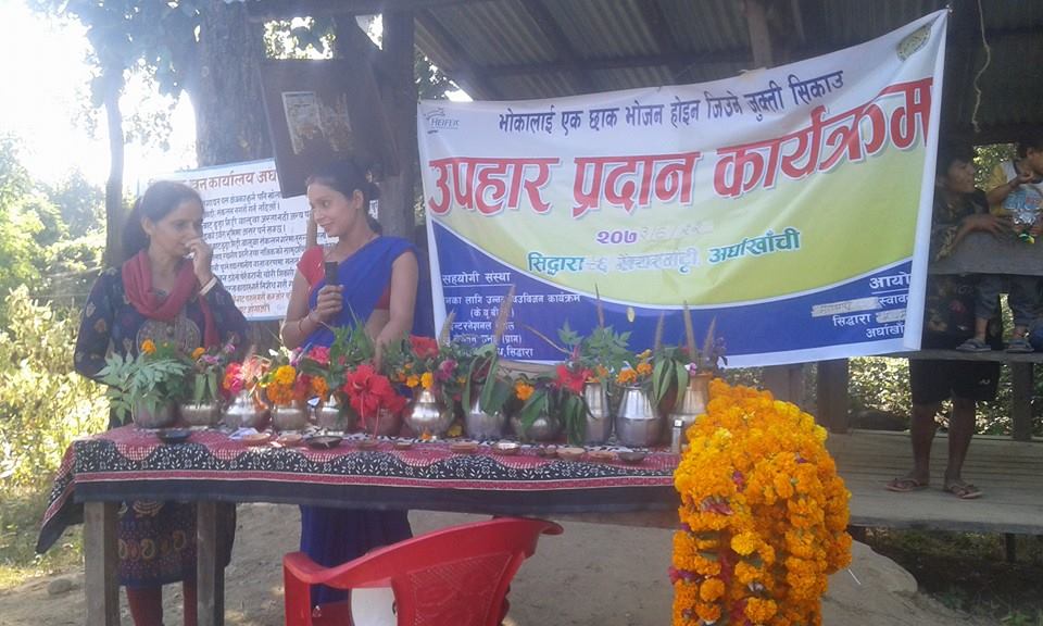 हेफर इन्टेरनेशनल नेपालबाट सन्चालित “भोका लाई एक छाक भोजन होइन जिउने जुक्त्ती सिकाउ” भन्ने मुल नारा उपहार प्रदान कार्यक्रम सिद्दाराको मौवाबारी स्थित स्वाबलम्बी समुहमा एक कार्यक्रमका बिच सम्पन्न भएको हो ।