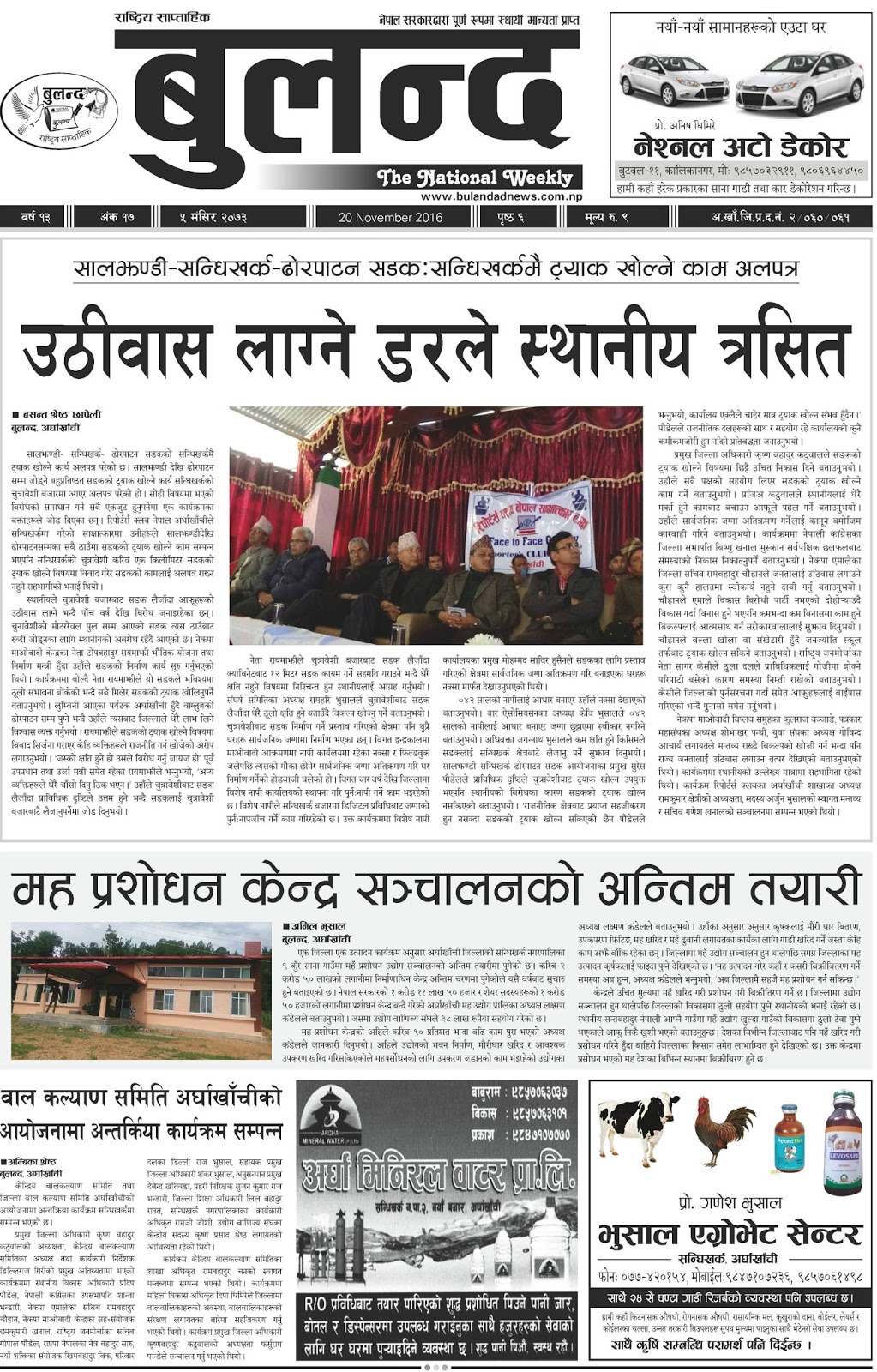 बुलन्द साप्ताहिकको २०७३ मंसिर ५ गतेको अंक