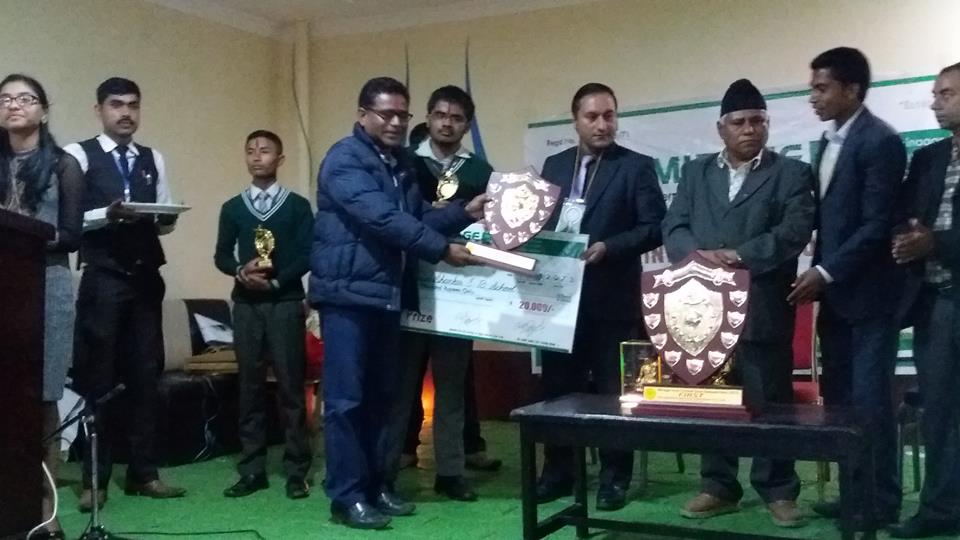 प्रतियोगीहरुलाई नगद रु २०,००० (बीस हजार), प्रमाण पत्र र शिल्डबाट सम्मान गरिएको थियोे । साथै काठमाण्डौमा अवस्थित द टाईम्स इन्टरनेश्नल कलेजबाट कक्षा ११ र १२ को अध्ययनमा १०० प्रतिशत छात्रावृति र वुटवलमा अवस्थित मिराज इन्टरनेशनल एजुकेशन प्रा.लिमा व्रिज कोर्ष अध्ययनमा पूर्ण छात्रावृति प्रापत गर्न सफल भएको भन्दै बिधालयले उनिहरुलाई बधाई दिएको छ ।