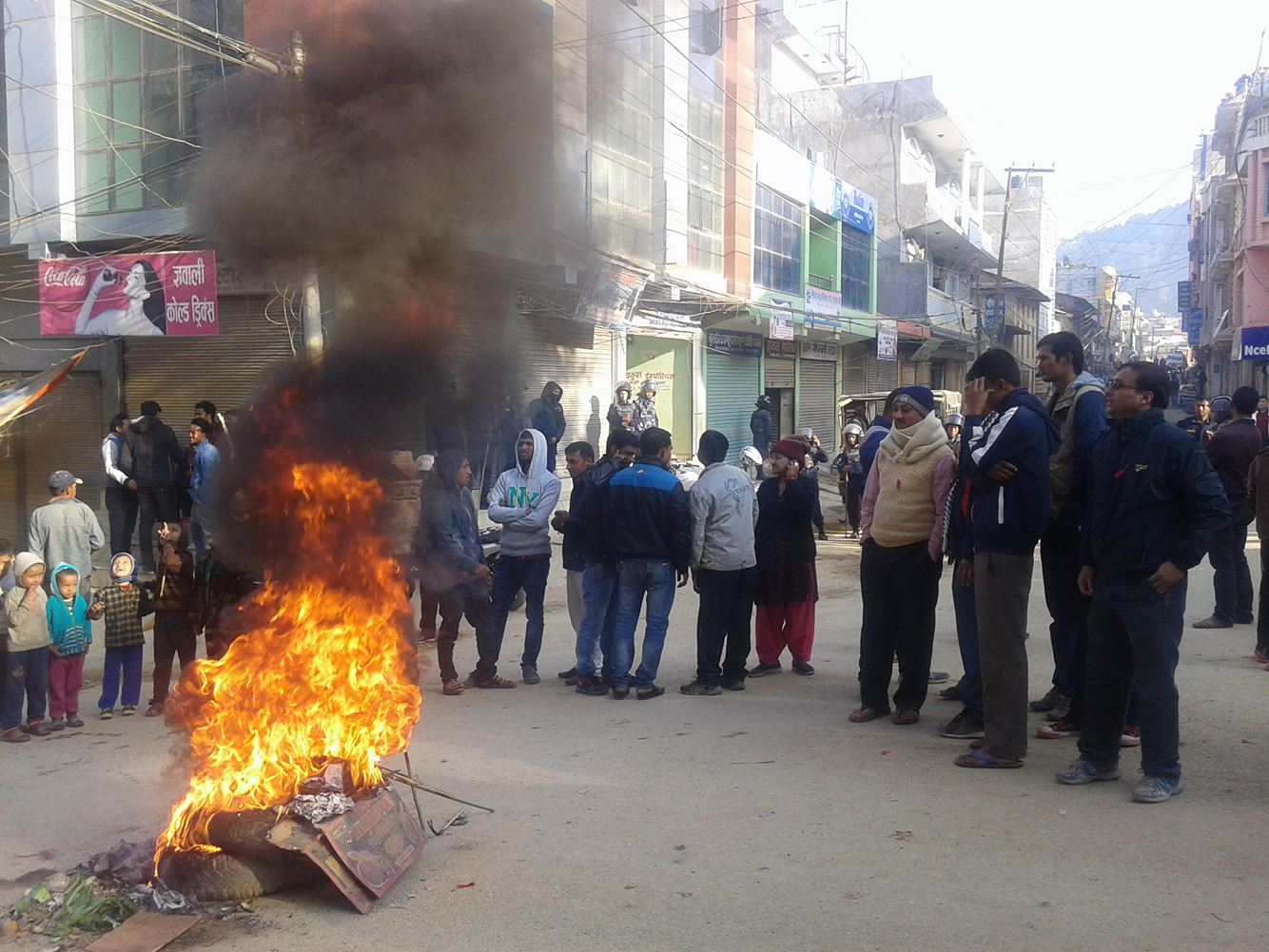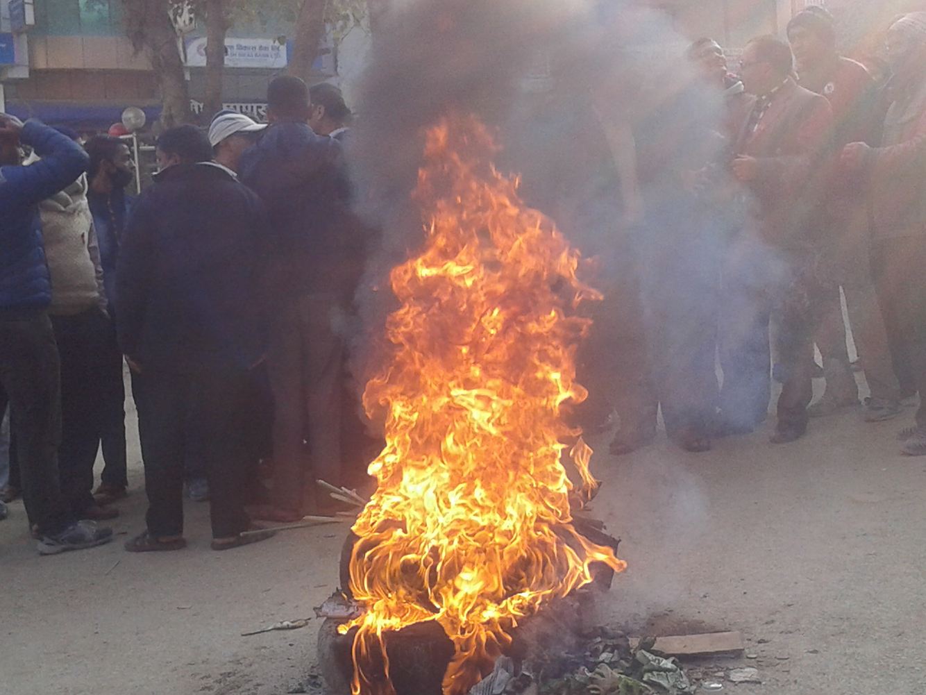 अान्दोलन परिचालन समितिको निर्णय बमोजिम बिहान देखि अान्दोलन झन चर्किएको हो । अान्दोलन चर्किएको अबस्थामा सरकारी कार्यालय सुनसान छन । सेबा ग्राहिहरु कार्यालयमा अाउन छोडेका छन । सेबाग्राहि नअाएपछि  कर्मचारीहरु घाम ताप्न ब्यस्त देखिन्छन ।