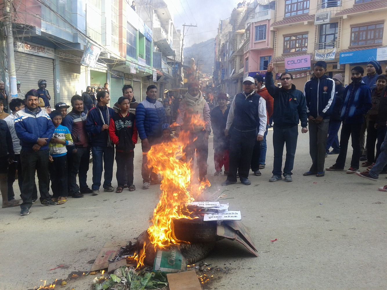 उता छिमेकी जिल्ला गुल्मी पाल्पा प्युठान रुकुम रुपन्देहीमा समेत अान्दोलन चर्किएको छ । रुपन्देहीमा बिहान देखि जनताले नाराजुलुस प्रदर्शन गर्नुको साथै ठाउँमा ठाउँमा टायर बालेर प्रदर्शन गरिरहेका छन ।