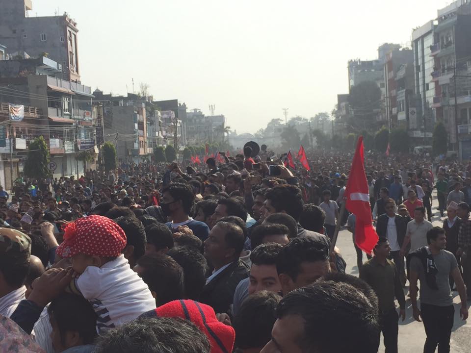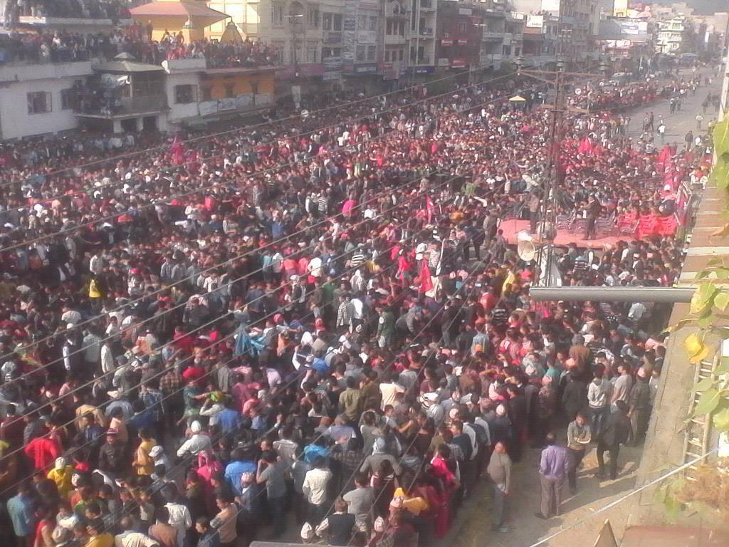 कार्यक्रममा नेकपा एमालेका उपमहासचिब बिष्णु पौडेलले तराई पहाड अलग गर्ने भारतिय दलाालको ईसाराका भरमा कठपुतली सरकारले प्रस्ताब ल्याएको बताउदै जनताको निणायक अान्दोलनले यसलाई प्ररास्त गर्ने बताउनु भयो । उहाले तराईको र पहाडको सम्बन्ध सरकाले छुट्टाउन खोजेको अारोप लगाउदै अान्दोलनमा होमिन अाग्रह गर्नु भयो ।