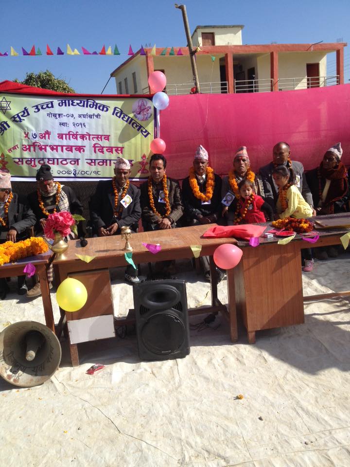 गोखुङ्गा, अर्घाखाँची मंसिर १९ । सूर्य माध्यमिक बिद्यालय गोखुङ्गा ७ सिमेदेउरालीको ५७ औं बार्षिकोत्सब तथा अभिभावक दिवस एक कार्यक्रमको आयोेजना गरी सम्पन्न भएको छ ।