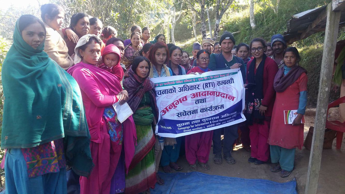 सिआईजी सचिव राधा नेपालीको सन्चालन रहेको सो कार्यक्रममा सिआईजीका अध्यक्ष मुक्तिनाथ भुसालले सहभागीहरुलाई अध्यारो जिन्दगीवाट उज्यालो तिर लम्कनका लागि सूचनाको हकको महत्व रहेको भन्दै यस सम्वन्धमा सबै जानकारी गराउनु भएको थियो ।