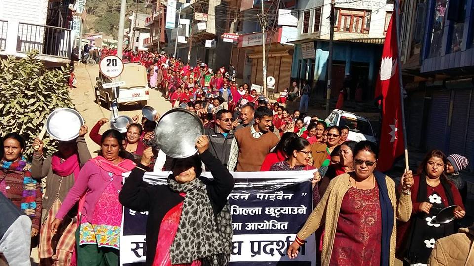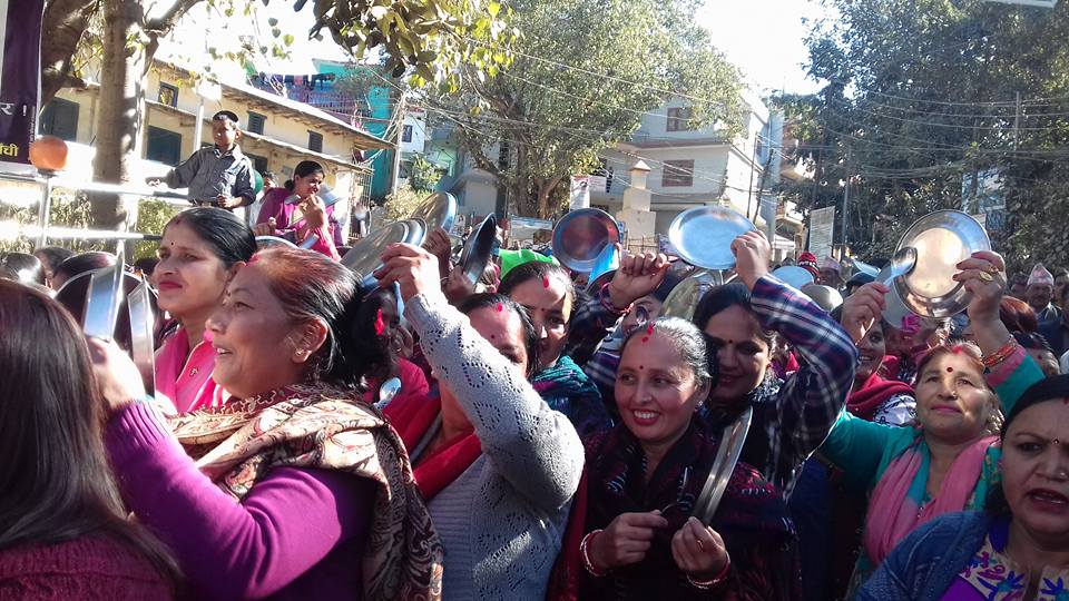सन्धिखर्कमा महिलाहरुद्वारा रित्तो थाल ठटाएर प्रदर्शन, बन्दको अवज्ञा गरेका ४५ वटा गाडी नियन्त्रणमा (फोटोहरु )