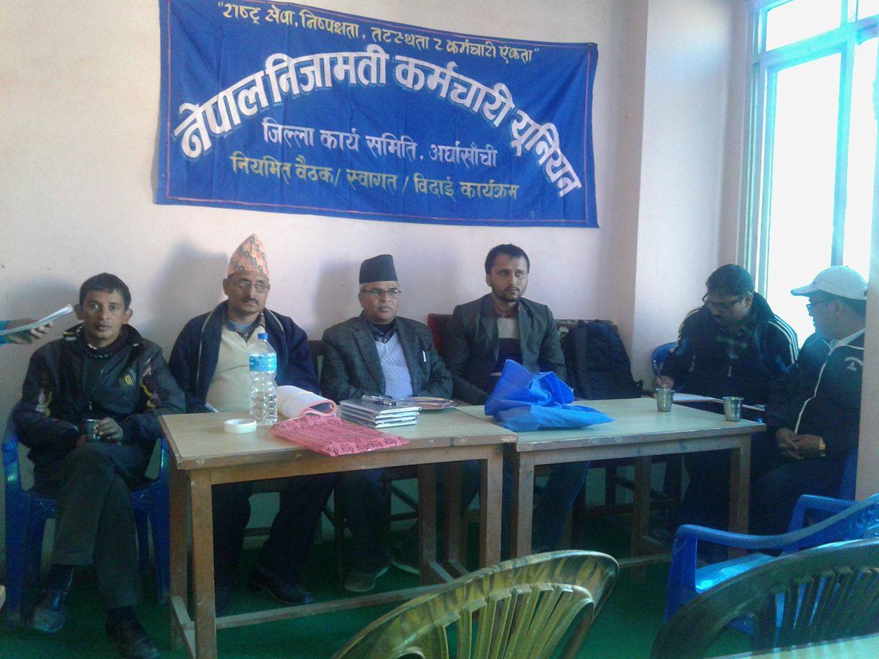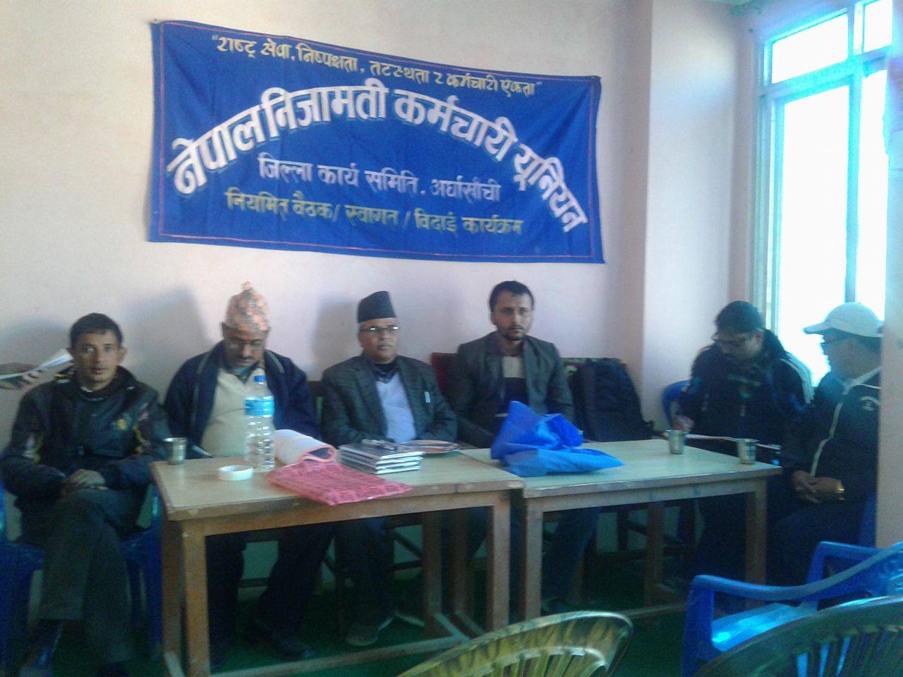 सन्धिखर्क, अर्घाखाँची । नेपाल निजामति कर्मचारी युनियन संघ अर्घाखाँचीको स्वागत तथा बिदाई कार्यक्रम सन्धिखर्कमा सम्पन्न भएको छ ।