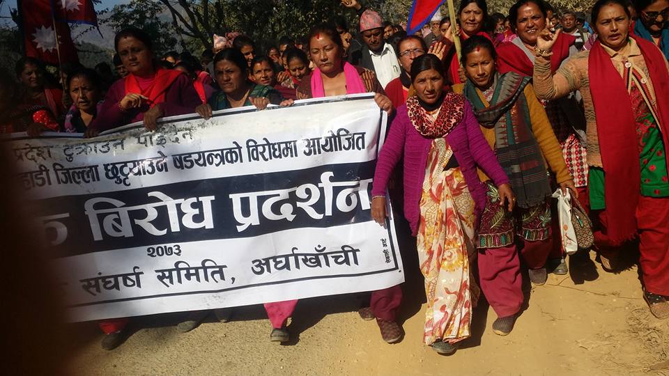सन्धिखर्क, अर्घाखाँची ( अर्घाखाँचीडट्कम) । ५ नम्बर प्रदेशबाट पहाडी जिल्लालाई टुक्राउने प्रस्ताव विरुद्द लामो समय देखि बन्द, हडताल र प्रदर्शनहरु गरिरहेका अर्घाखाँचीकाआन्दोलनकारीले आईतबार प्रदेश बचाउन ज्यान समेत दिन तयार भएको भन्दै सपथ लिएका छन् ।