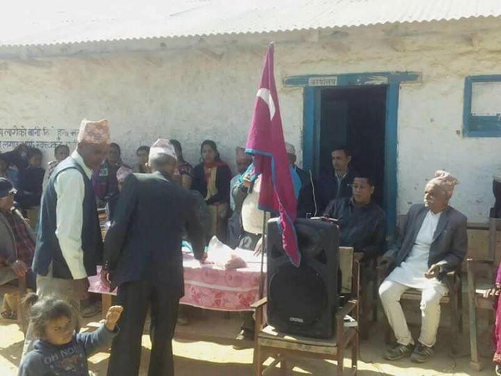 विद्यालयमा आफ्नो कार्यकाल समाप्त गरि बस्नु भएका भुतपुर्व शिक्षक दिनामणी भुसाललाई उच्च कदर गर्दै अविर र दोसल्ला ओढाएर मायाको चिनो स्वरुप करुवा बेला सहित सम्मान गरिएको थियो ।