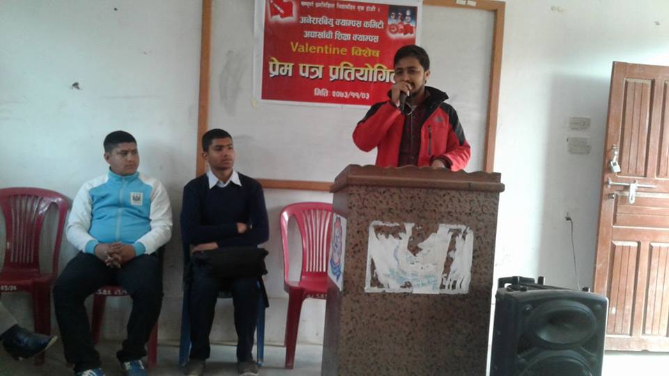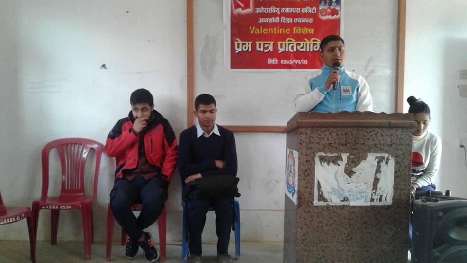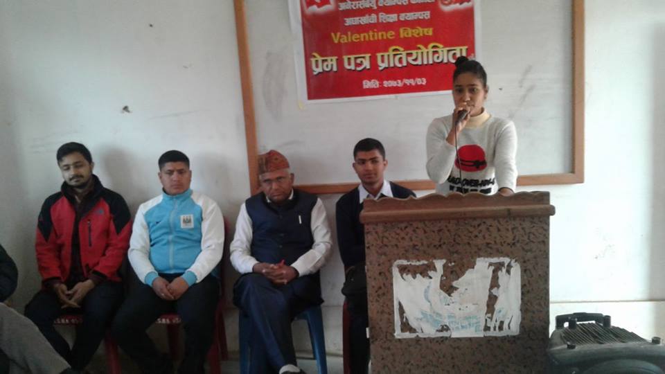 सन्धिखर्क, अर्घाखाँची ( अर्घाखाँचीडट्कम) । अनेरास्वबियु पाणिनी बहुमुखी क्याम्पस कमिटिको आयोजनामा मंगलवार प्रेम दिवशको अवसरमा प्रेम पत्र तथा गजल प्रतियोगिता सम्पन्न भएको छ ।