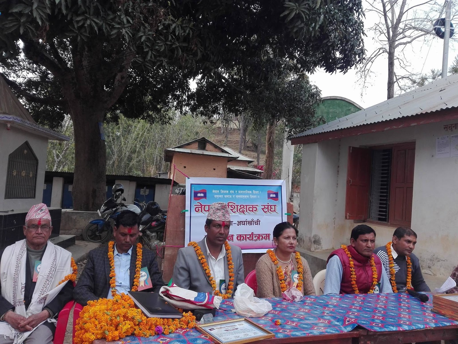 शिक्षाको माध्यमबाट समाज रुपान्तरण मा खेलेको भुमिकाको उच्च सम्मान गर्दै संघले साविकको वाङ्ला गाविस भित्रका सेवा निबृत्त शिक्षकहरुलाई सम्मानपत्र सहित दोसल्ला ओढाएर सम्मान गरिएको हो । नेपाल शिक्षक संघका केन्द्रीय सदस्य धना भण्डारी, अर्घाखाँची जिल्ला सभापति यादव घिमिरे र गुल्मी जिल्ला सभापति प्रेमनारायण भण्डारीले शिक्षकहरुलाइ सम्मान गरेका हुन् ।