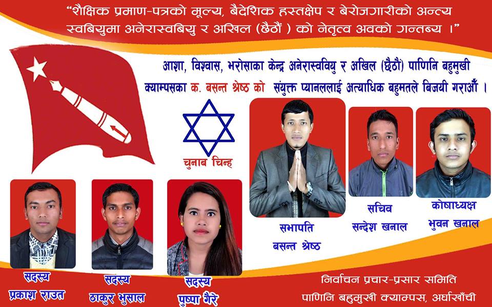पाणिनी क्याम्पसमा हुने स्ववियु चुनावमा नेविसंघ, क्रान्तिकारी प्रचण्ड, विप्लव र नयाँशक्ती विद्यार्थी बिच एकता