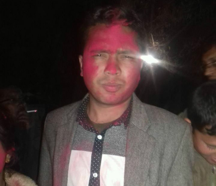 निर्वाचन जितेपछि पाणिनी बहुमुखी क्याम्पस सन्धिखर्कमा स्ववियु सभापति लक्ष्मण खड्का ।