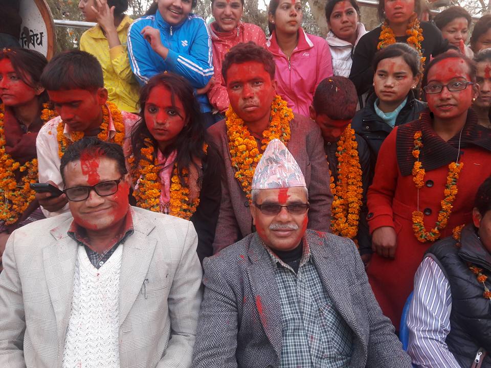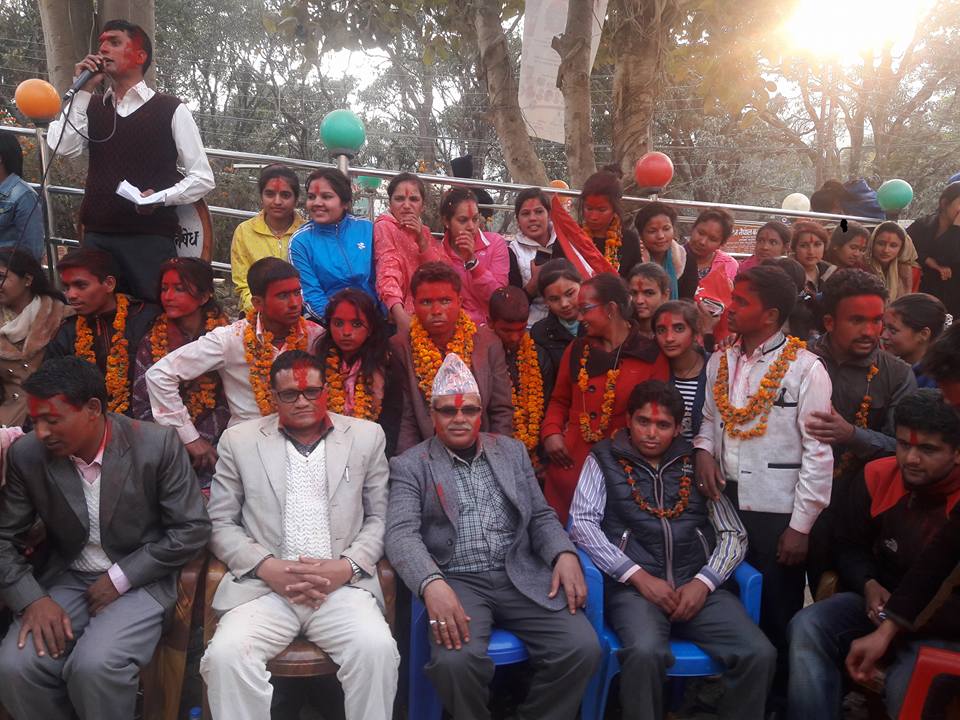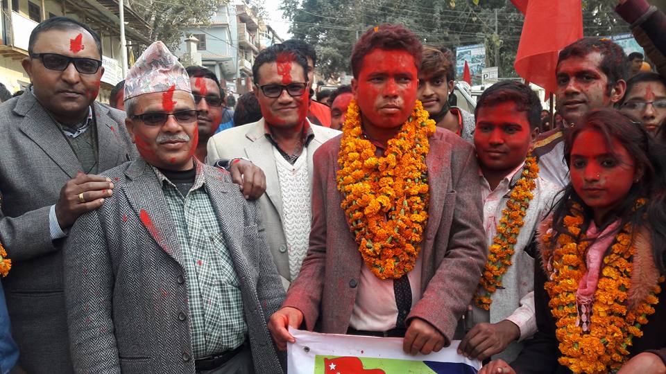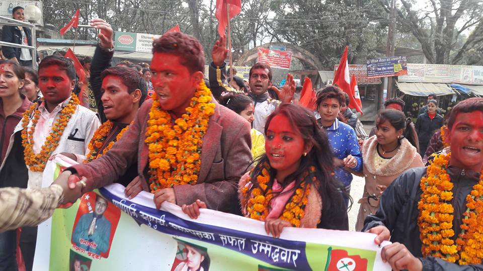 जुलुसमा नेकपा ,माओबादी केन्द्र्का पोलिट्ब्युरो सदस्य चन्द्र बहादुर खड्का ,नेपाली काँग्रेस जिल्ला सभापति बिष्णु प्रसाद खनाल ” मुस्कान ” सहित जिल्ला स्तरका नेताहरु सहभागी बनेका थिए । बिजयी जुलुसले बजार परिक्र्मा पछी शान्ती बगैचामा कोण सभा गरेको छ।