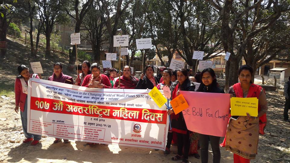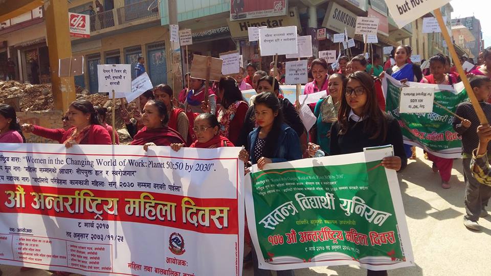 अन्तर्राष्ट्रिय श्रमिक महिला दिवसका अवसरमा बुधवार विहान सन्धिखर्कमा विभिन्न संघ – संस्थाले -यालीका निकालेका थिए ।