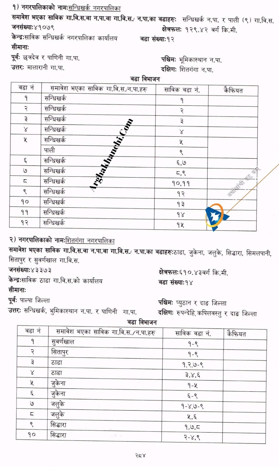१ – सन्धिखर्क नगरपालिका – अब हुने नगरपालिका केन्द्र: साविक सन्धिखर्क नगरपालिका, अब हुने वार्ड संख्या: १२
