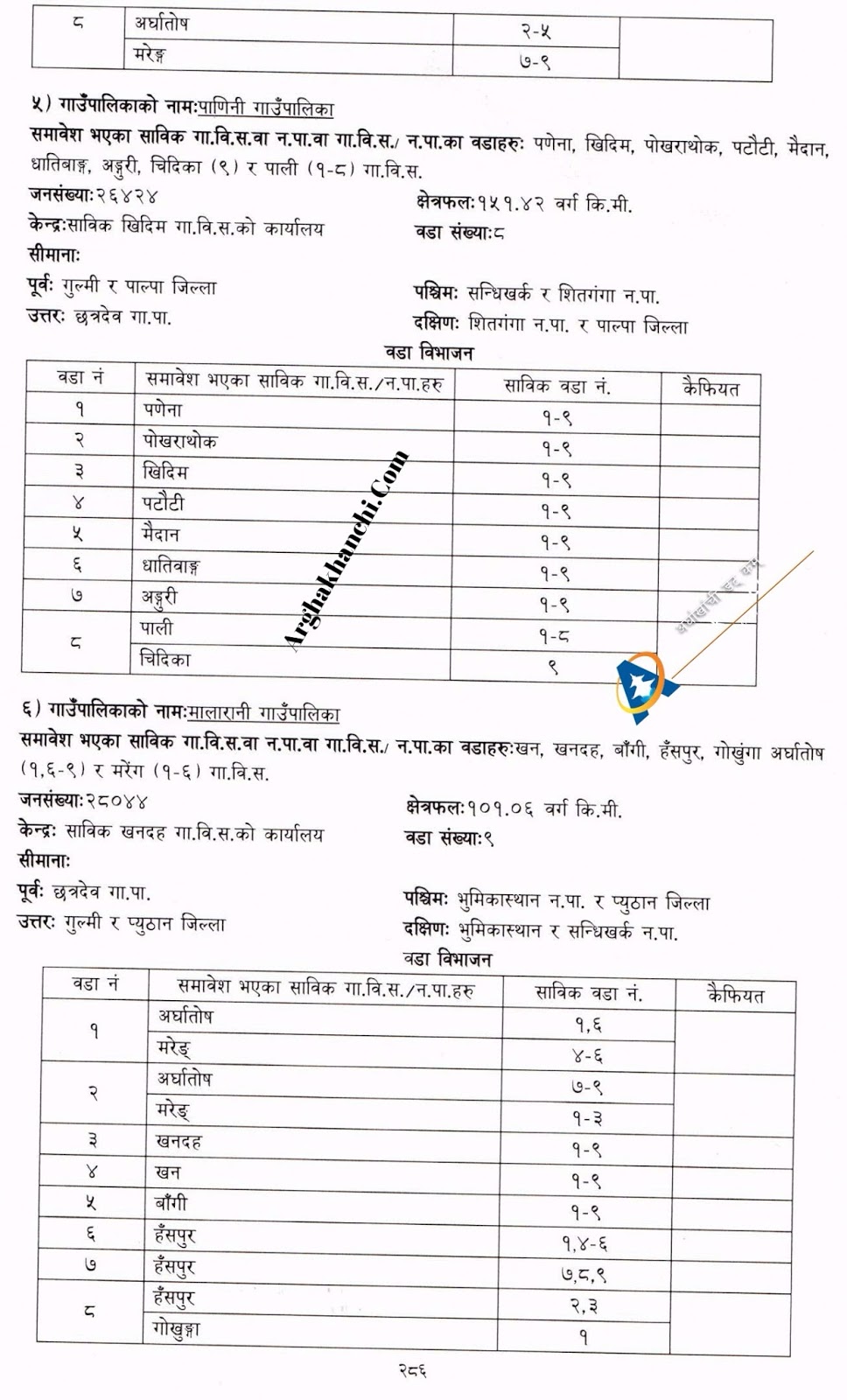 अर्घाखाँची जिल्लामा ३ नगरपालिका र ३ गाउँपालीकाकाे विवरण