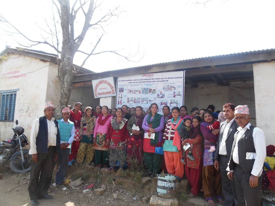पोखराथोक, अर्घाखाँची । अर्घाखाँची जिल्लाको पोखराथोक गाविसमा ग्रामिण नमुना कृषक, १००० दिन का महिला, महिला स्वास्थ्य स्वयमसेविका, गाविसका सामाजिक परिचालक गरी ५४ जना घर परिवारलाई विउँपल वितरण गरिएको हो ।