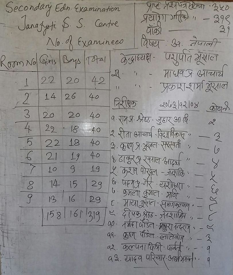 त्यसैगरी आज चैत्र ३ गते देखि १४ गते सम्म सन्चालन हुने परीक्षालाई व्यवस्थित रुपमा संचालन गर्नको लागी १७ जना केन्द्राध्यक्ष, २१ जना सहायक केन्द्राध्यक्ष, १८२ जना निरीक्षक, ९६ जना सहयोगी र प्रत्येक केन्द्रमा बढीमा १५ जना सुरक्षाकर्मीको ब्यबस्था गएको छ ।