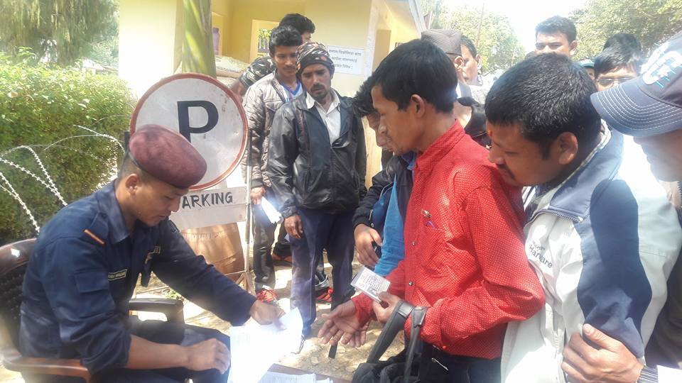 बिहान १० देखि साँझ ५ बजेसम्म म्यादी प्रहरी भर्ना चलिरहेको छ । म्यादी प्रहरीका लागि फर्म भरेर १० रुपैयाँको टिकट टाँस्नुका साथै नागरिकताको फोटोकपी पेस गरेपछि १८ वर्ष पूरा भई ५४ वर्ष नकटेका व्यक्ति छनौटका लागि योग्य हुन्छन् । यसअघिका निर्वाचनमा काम गरेका, सुरक्षा निकायमा काम गरेर फर्केका अनुभव झल्कने प्रमाणपत्र भए त्यस्ता व्यक्ति प्राथामिकतामा दिईने बताइएको छ ।