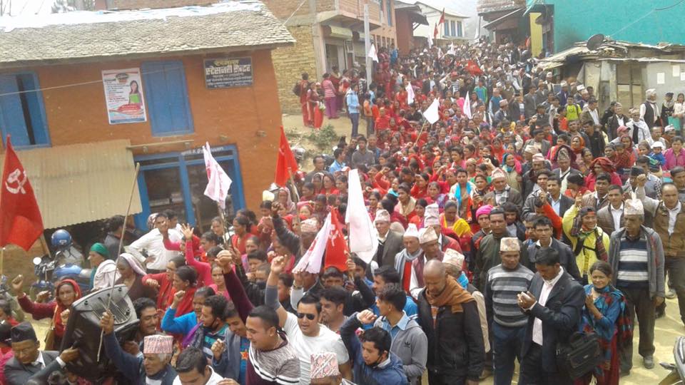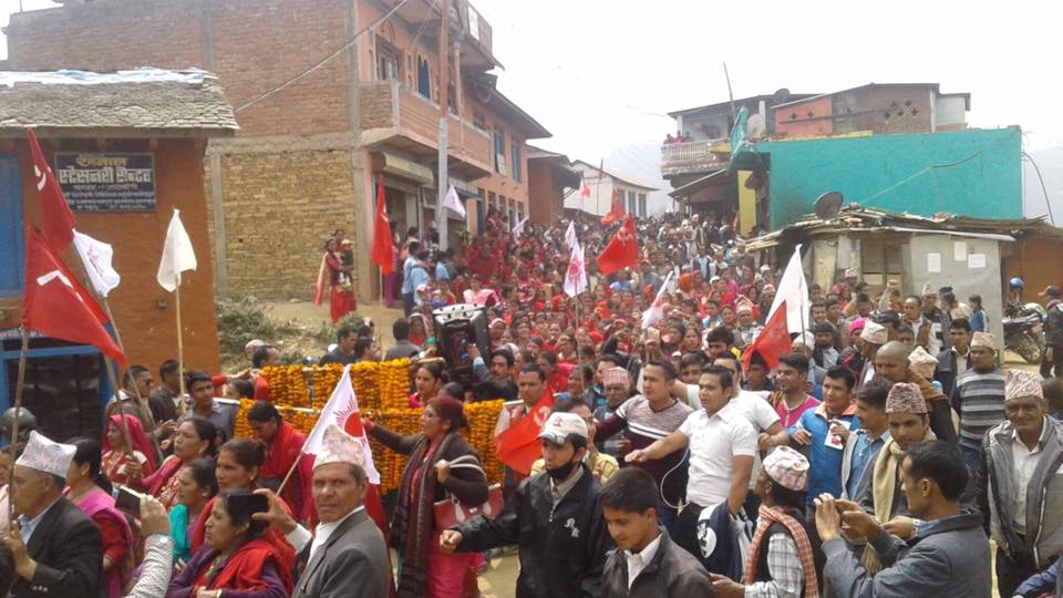 सभामा सयौको संख्यामा नेपाली कांग्रेस र माओबादी केन्द्र परित्याग एमालेमा प्रबेश गरेका थिए । पार्टी प्रबेश गर्नेहरुलाई केन्द्रिय सचिब गोकर्ण बिष्ट अविर लगाइदिएर स्वागत गरेका थिए ।