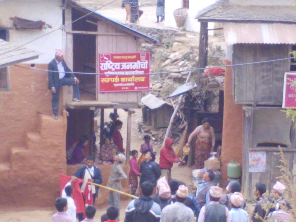भुमिकास्थान नगरपालीका बडा नं. ८ नुवाकोट हटियामा प्रमुख अतिथि राष्ट्रिय जनमोर्चाका केन्द्रिय सदस्य तथा जिल्ला अध्यक्ष झविलाल थापाले साईनवोर्ड पढेर कार्यक्रमको उद्घाटन गर्नुभएको थियो ।