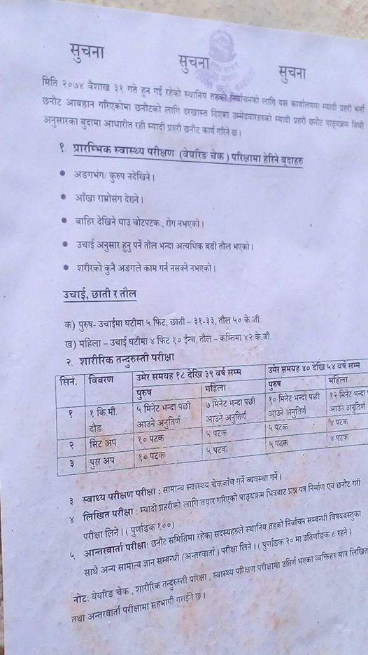 १८ सय २५ जनाले आवेदन दिएका मध्ये भर्ना गर्नका लागि पुर्याइने सम्पूर्ण पक्रिया पुरा गरेर चैत्र १९ र २० गते दुई दिन छनौटको प्रक्रिया भईरहेको हो ।