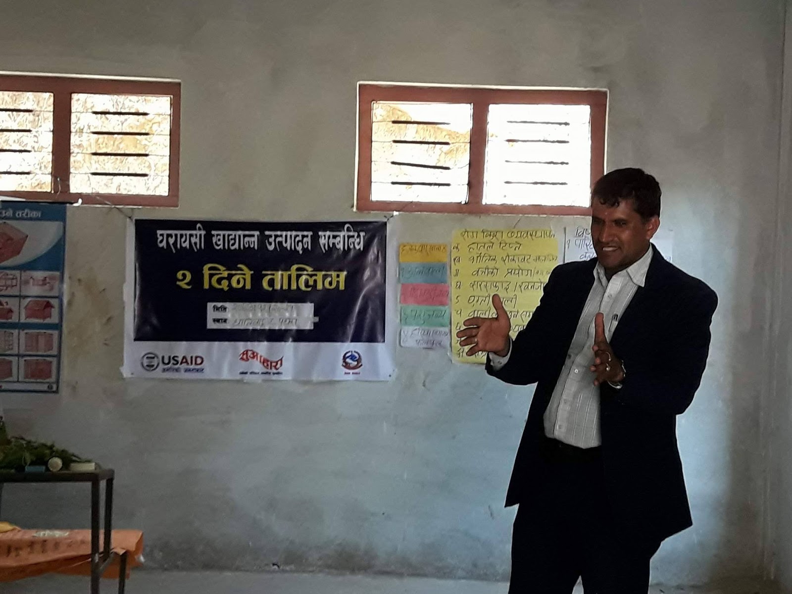 तालिममा सहजिकरण गर्दै लुम्बिनी सामाजिक विकास केन्द्रका कार्यकारी निर्देशक इन्द्रमणि पाैडेलले तालिममा सहजिकरण गर्दै अर्धबन्देज खाेरमा कुखुरा पालन गर्नुपर्ने, कुखुरालाई राेग लागेमा उपचार कसरी गर्ने, कुखुरा पालनकाे लागि अावश्यक खाद्यान्न कसरी बनाउने विषयमा सहजिकरण गर्नुभएकाे थियाे।