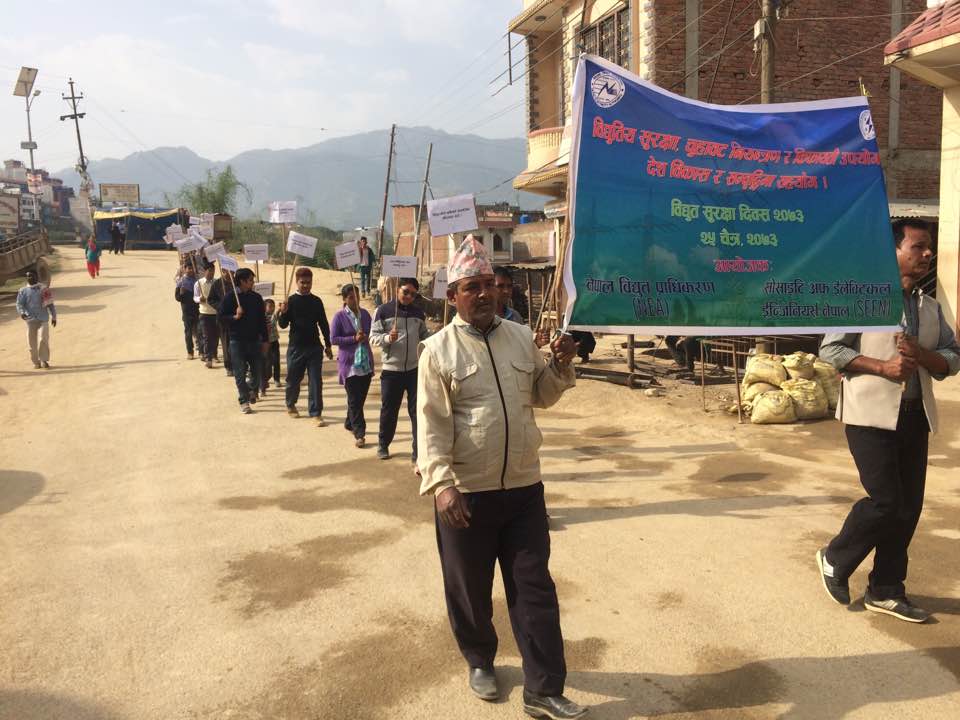 नेपाल विद्युत् प्राधिकरण अर्घाखाँचीको आयोजना मनाइएको विद्युत सुरक्षा दिवसको अवसरमा सन्धिखर्कमा -र्याली निकालिएको थियो ।